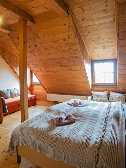 Apartmán Aura, je apartmán s tou správnou dušou a so všetkým čo k tomu patrí. Ponúka veľkolepý priestor 170m2. Dve spálne, obývaciu časť, kuchyňu s jedálenským kútom, ale aj tajné ležovisko pre deti. V čarovnom podkroví si každý príde na svoje. Tento priestor obľubujú veľké rodiny s deťmi, partie kamarátov ale aj kolegovia z práce či nadšenci jógy. Najkrajší výhľad na staré mesto je práve z okien tohto apartmánu.